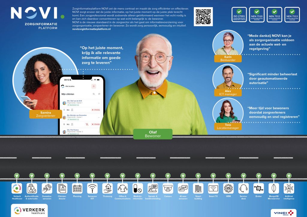 Eén zorginformatieplatform dat met je meedenkt en je ondersteunt. Alles om de zorg efficiënter en effectiever te maken. Zodat jij de beste zorg kunt bieden. Zorginformatieplatform NOVI zorgt ervoor dat de juiste informatie, op het juiste moment op de juiste plek terecht komt. Een zorgprofessional wordt zodoende alleen geïnformeerd wanneer het echt nodig is, en kan zich daardoor concentreren op wat echt belangrijk is: ‘de bewoner’. NOVI is de nieuwe standaard in de zorgsector als het gaat om informatievoorziening. Door relevante gegevens op het juiste moment beschikbaar te stellen, wordt zorg persoonlijk, eenvoudig en intuïtief.