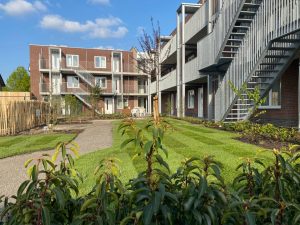 Bob de Beer staat met trots in de tuin. “Deze plek is heel belangrijk”, zegt Bob. “Van passieve bewoners willen we graag naar actieve bewoners, de tuin is hiervoor de meest geschikte plek. Na de aanleg bleef er weinig budget over voor goed tuinmeubilair. We vroegen aan de nieuwe bewoners of zij hun tuinmeubilair konden meenemen. En wat bleek? De mensen vinden het hartstikke fijn om aan hun eigen tafel te zitten en zorg voor diversiteit en een thuisgevoel.”